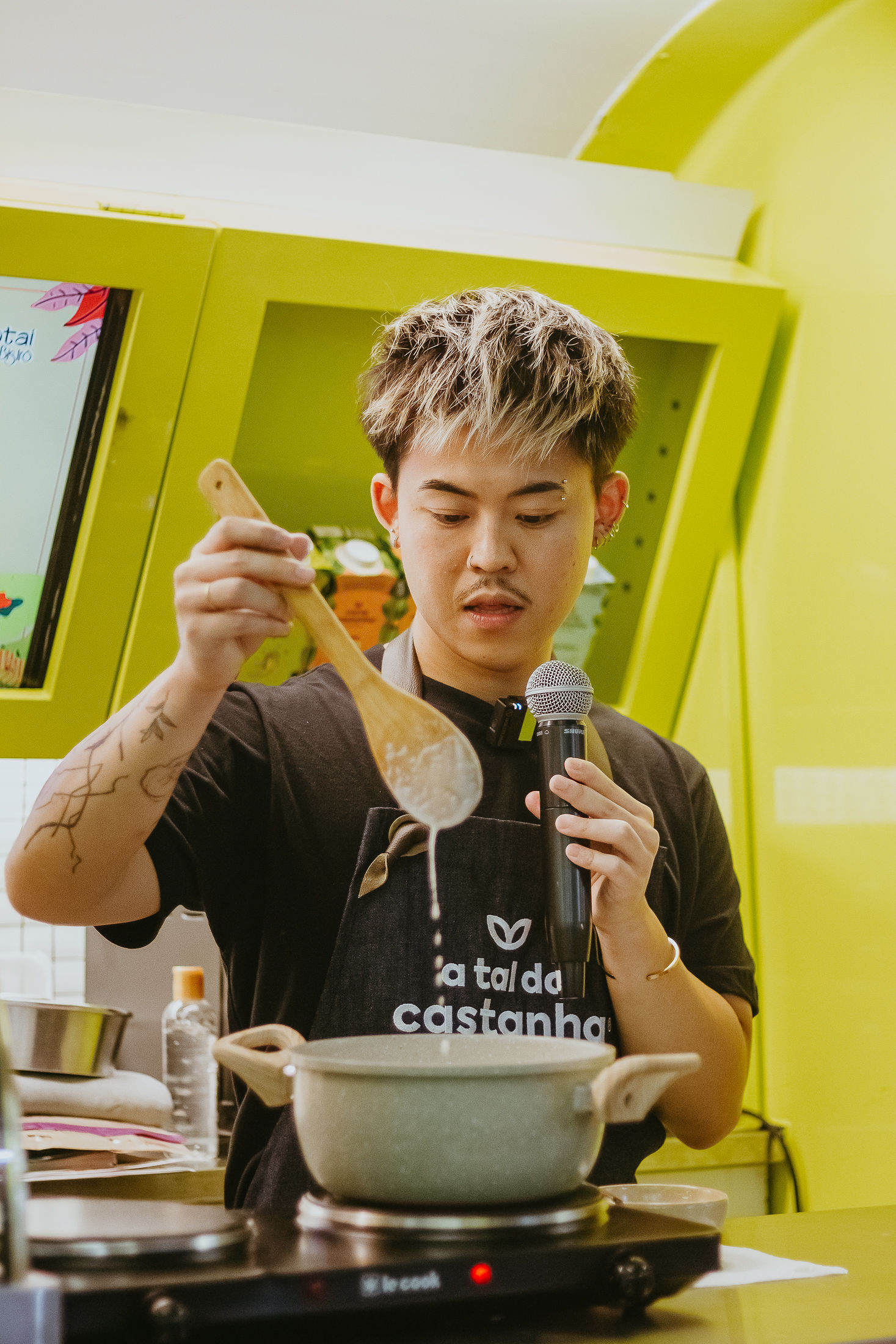 Além da programação confirmada, o chef vegano e influenciador Leo Kazuya do @roledevegano esteve presente no espaço da marca durante o sábado. Ele interagiu com o público mostrando como é possível incluir os produtos em diferentes preparos, além de convidá-los para degustação.