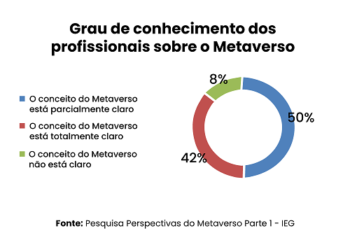 Segundo Lara Pessanha, sócia do IEG, com base na pesquisa foi possível perceber que o metaverso já é um termo bastante conhecido entre os profissionais do país, entretanto, muitos ainda não dominam totalmente o conceito, tendo algumas dúvidas sobre o mesmo. Ela aponta que isso é natural, dado que o tema ainda é considerado relativamente novo.