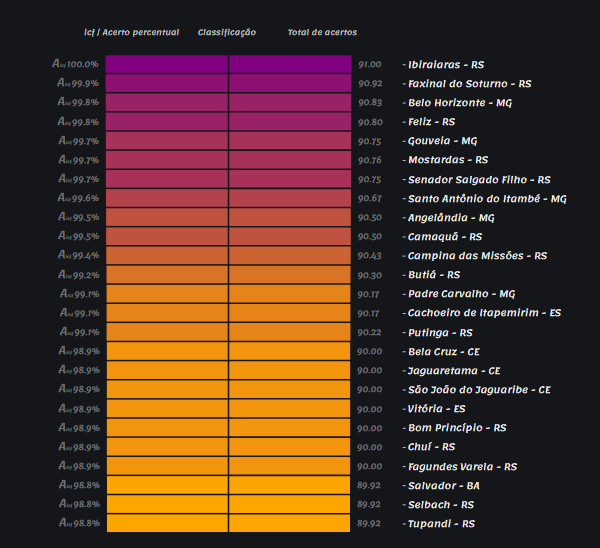 Ainda de acordo com Helbert Lopes de Macedo, os municípios com melhor colocação no ranking a nível nacional e nos níveis estaduais são os que aplicam os padrões de qualidade exigidos pela legislação e conseguem enviar informações consistentes, que se refletem nas pontuações do levantamento da Secretaria do Tesouro Nacional.